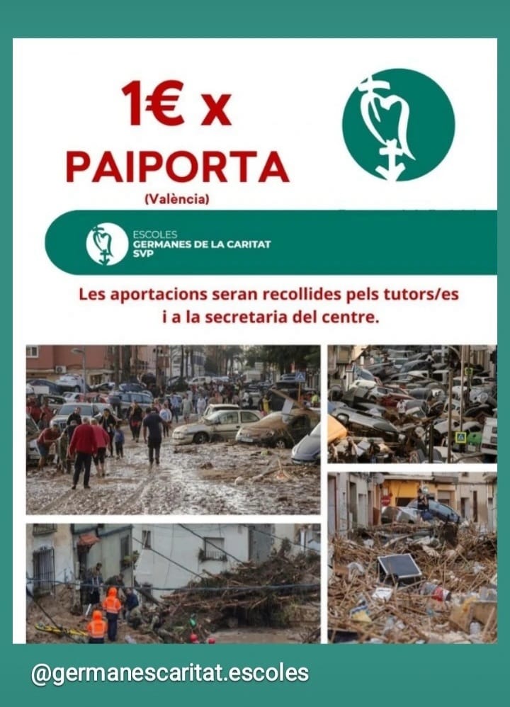 Los afectados por las inundaciones son muchísimos. Centramos nuestra ayuda en Paiporta, especialmente para el cuerpo docente del colegio LA INMACULADA de Paiporta.